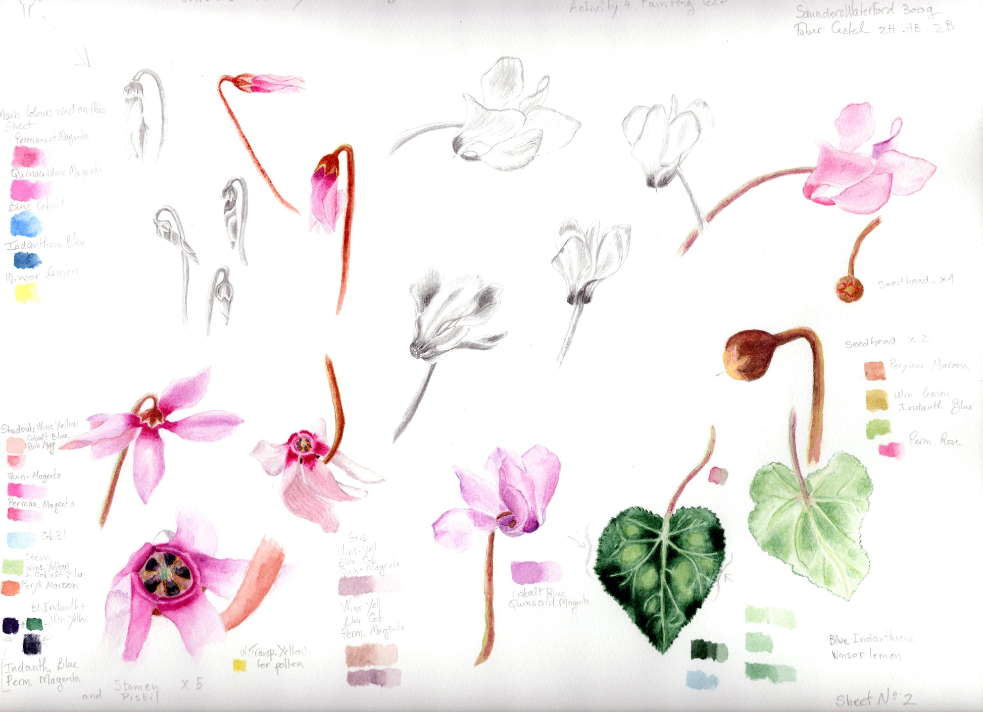 2ème journée : Suite, transfert sur le papier aquarelle de la composition finale. Recherche des couleurs, composition du nuancier de la planche de votre aquarelle. Mise en couleur.